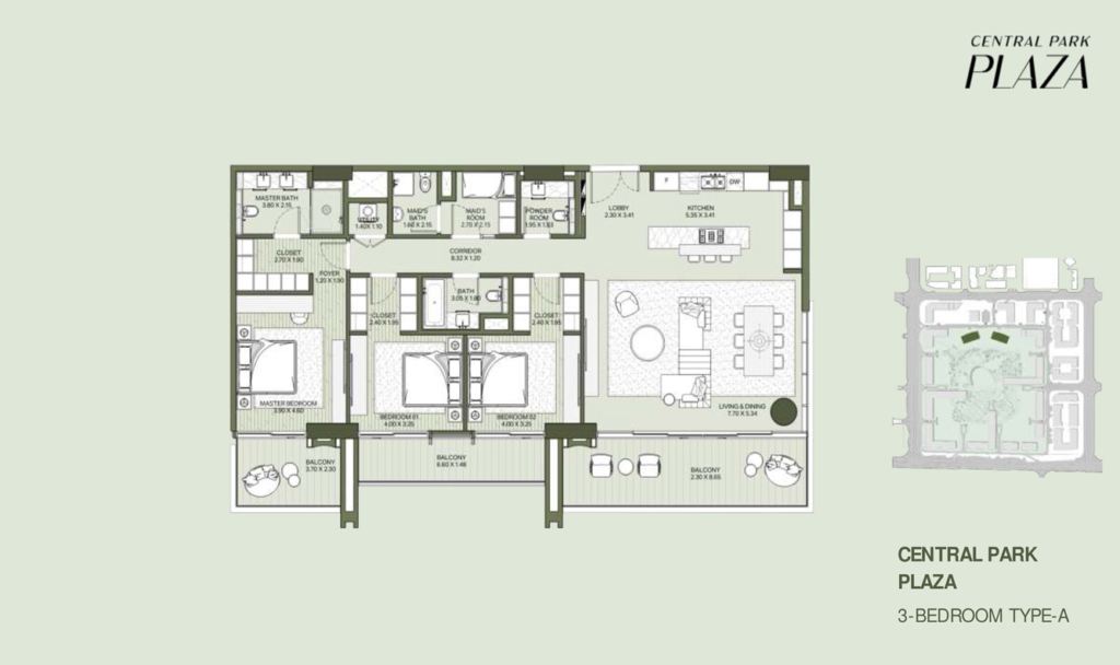 - Central Park Plaza is located in City Walk, Dubai, within the lush green surroundings of Central Park, offering a prime and prestigious address.