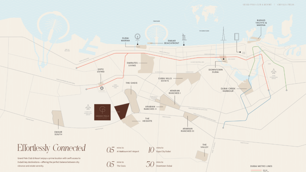 Grand Polo Club & Resort is a 5.54 million sqm ultra-luxury master community by Emaar in Dubai, inspired by equestrian living and royal sophistication.