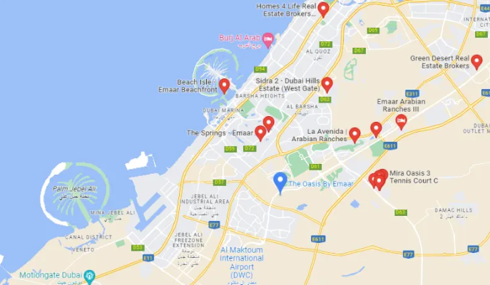 Located in Dubai’s dynamic landscape at The Oasis, this tranquil sanctuary allows residents to connect seamlessly with the natural environment. The strategic location provides unparalleled convenience and accessibility, being close to major transportation routes and key landmarks. Whether you’re traveling to Downtown Dubai, Dubai Mall, or Al Maktoum International Airport, this prime location ensures you are always within easy reach of your destination.